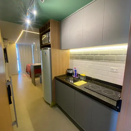 Το διαμέρισμα Estudio 311 Vista Parcial Mar Reserva Do Cupe Blp διαθέτει μικρή κουζίνα.